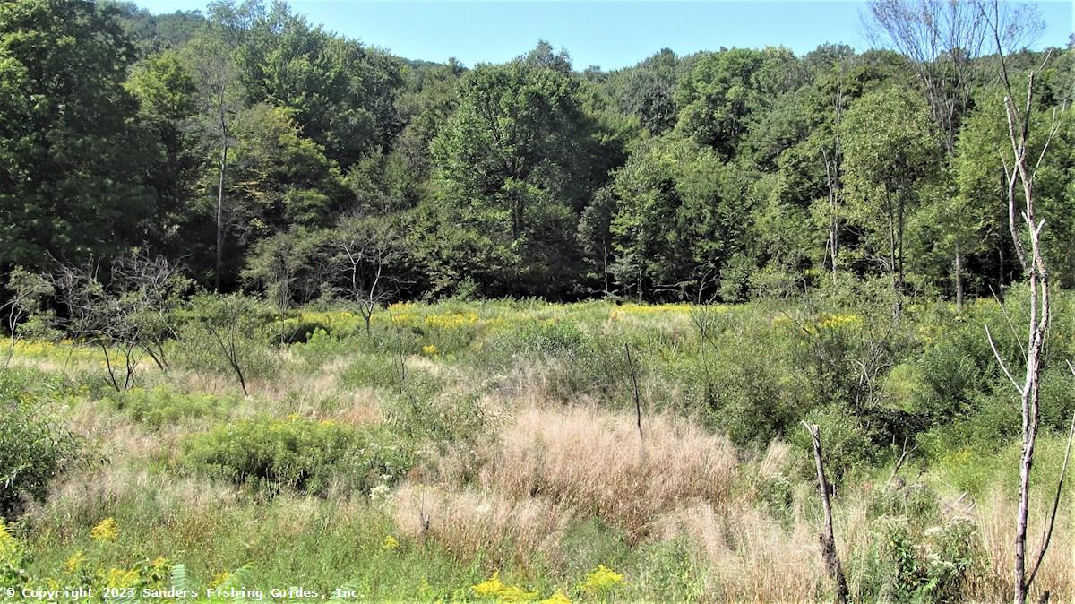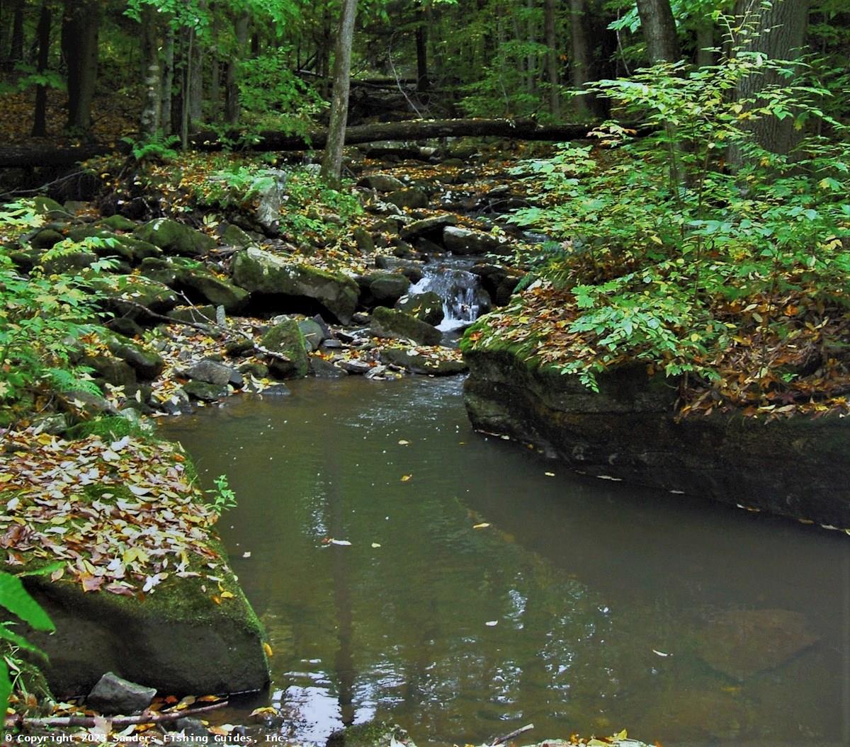 Formerly one of the best trout streams in Allegany State Park, Bay State Brook has been severely impacted by beaver impoundments, which warm the water and contribute to siltation. In addition, the adjacent Bay State Road, which isn't much more than a wide, dirt and gravel path, also may be contributing to siltation. Fortunately, a survey conducted by the DEC in 2018 (see Links) found a slight increase in the number of wild brown trout and even a few wild brook trout, the first captured in the stream since 1986. Recent angler reports to the DEC also indicate that limited numbers of brook trout are again being caught here. Perhaps there is some hope for this stream.