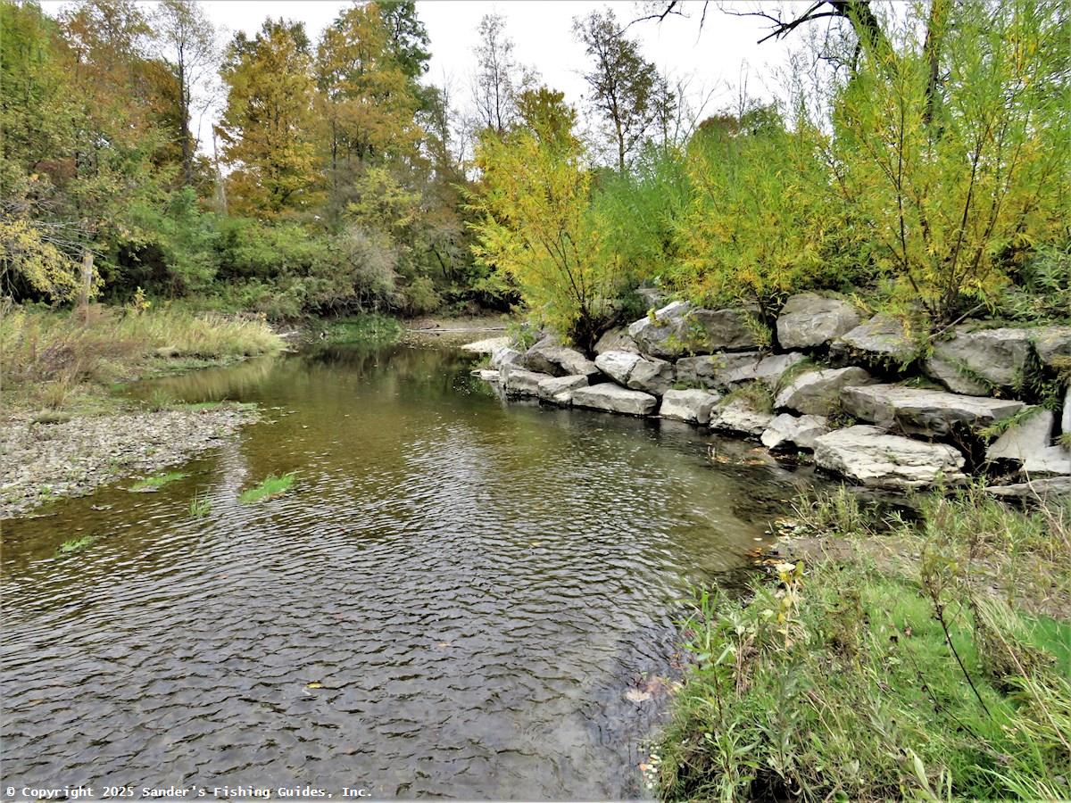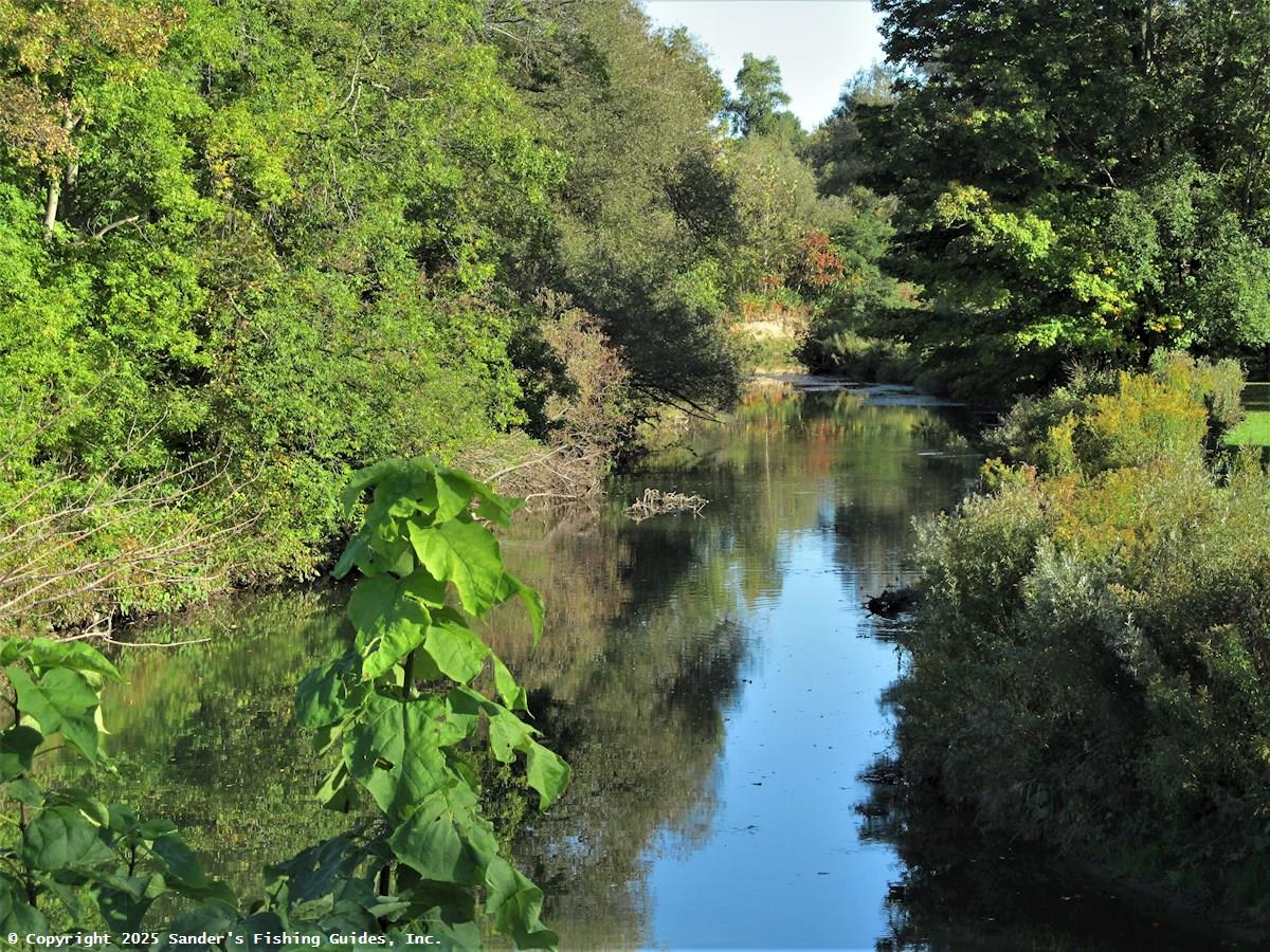 The lower section of Prendergast Creek is quite short, extending for about a mile, most of which is downstream of Route 394. Immediately downstream of Route 394, the stream flows along the south side of the DEC's muskellunge hatchery property. This is state property, which you are allowed to access, and the public is allowed to fish in Prendergast Creek from this property—but not in the rearing pens! (Note that hunting is not allowed on the hatchery property.) This section of the stream can be a very productive stretch of water, since virtually every species of fish that swims in Chautauqua Lake, including muskies, walleye, bass, and panfish, are likely found in this stream at some time during the year. Locals have told me that there is a substantial run of walleye in this stream, and they often make their way at least as far upstream as the campground located along Davis Road.