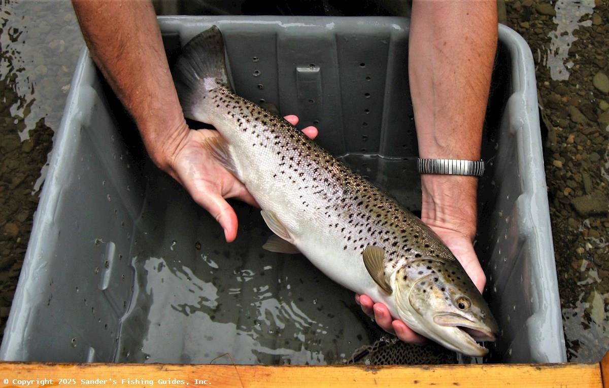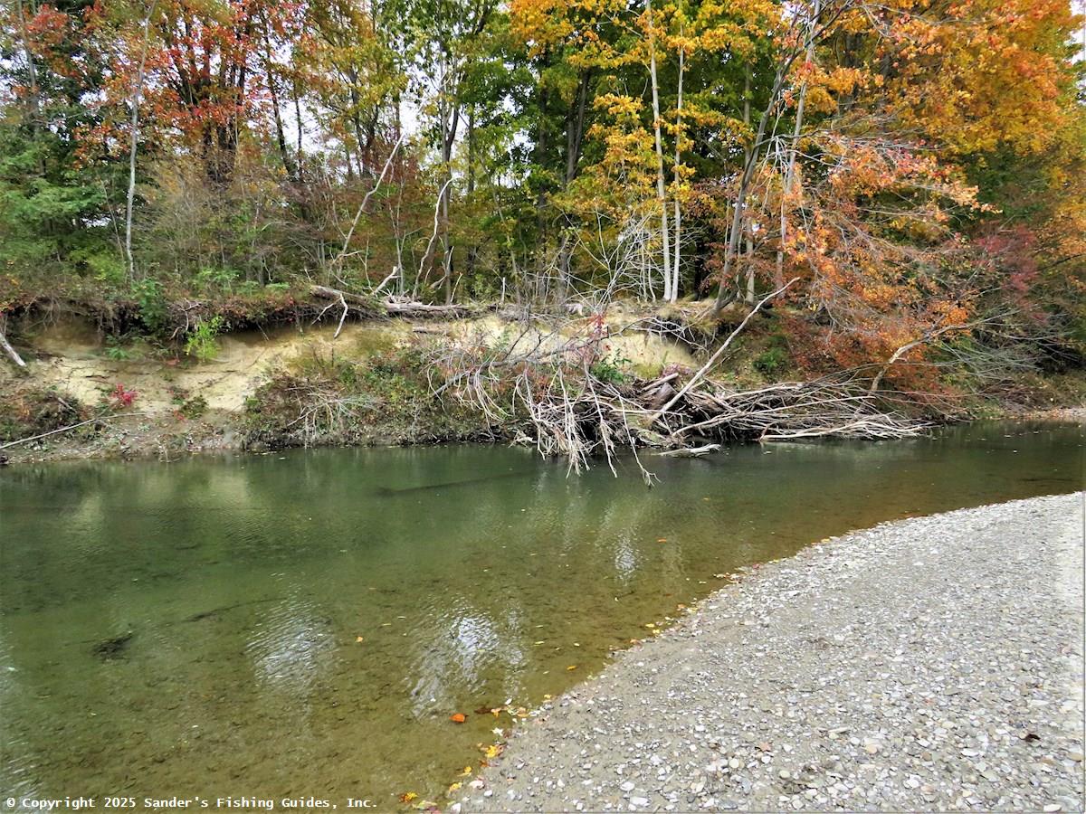 Some of the wild brown trout found in this stream are quite large. These are often fish that originate in Prendergast Creek and, for a portion of the year, move out into Chautauqua Lake to feed on the lake's abundant forage fish. The brown trout grow big in the lake, some reaching up to 20+ inches, and return to the stream in the summer to escape warm water temperatures in the lake. The DEC has determined that these fish live at least part of the year in the lake based on the growth pattern of their scales.