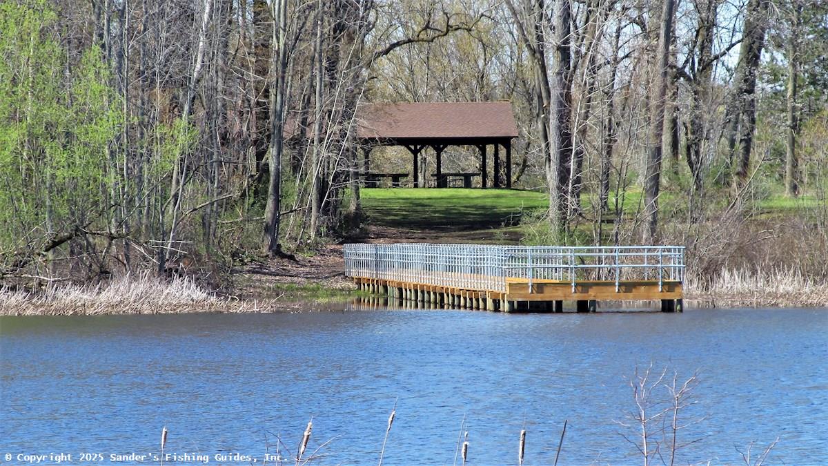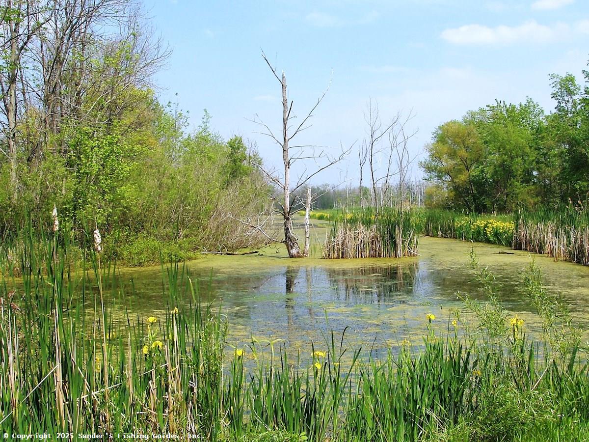 The area is drained by the upper section of Oak Orchard Creek, which has a good population of northern pike, carp, and panfish. The man-made impoundments on the refuge also provide fishing for carp, suckers, panfish, and possibly some largemouth bass and northern pike. Small boats (no motors) and canoes are also allowed on the impoundments, but they must be carried in; motor vehicles are not allowed to enter the area. (The map pin is located on the parking area for the picnic shelter off Knowlesville Road.)