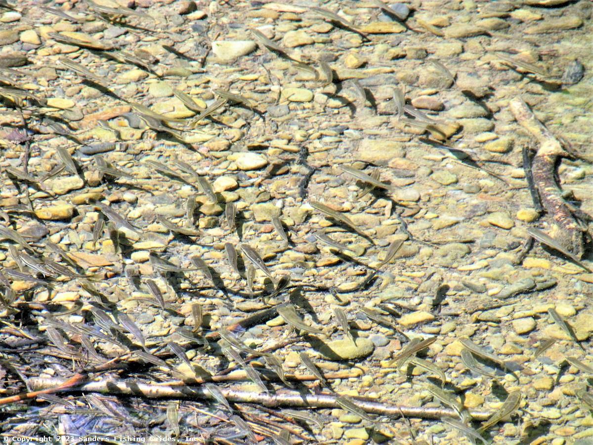 Blacknose dace are abundant in parts of this stream (see photos), and they are a major source of food for trout. And as with trout, these small fish thrive only in cool, clean water. See Links for how to tie a blacknose dace fly.